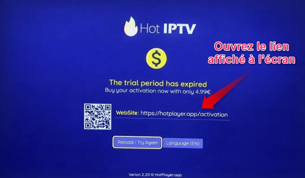 Après avoir installé Hot Player sur Smart TV Samsung et activé l’application :