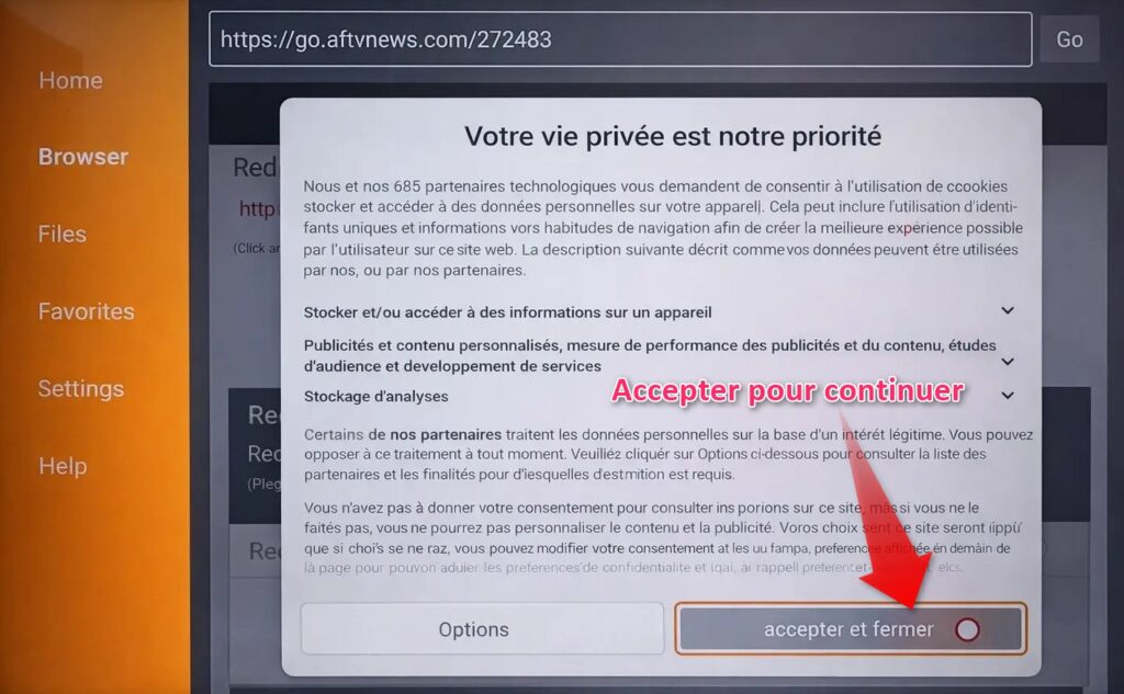 Lors de la première utilisation, un message de confidentialité peut apparaître.