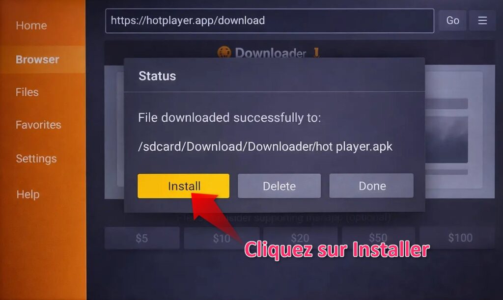 Étape 4 : Installer et ouvrir Downloader