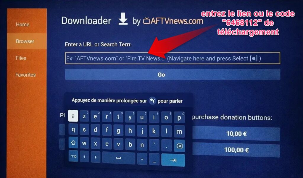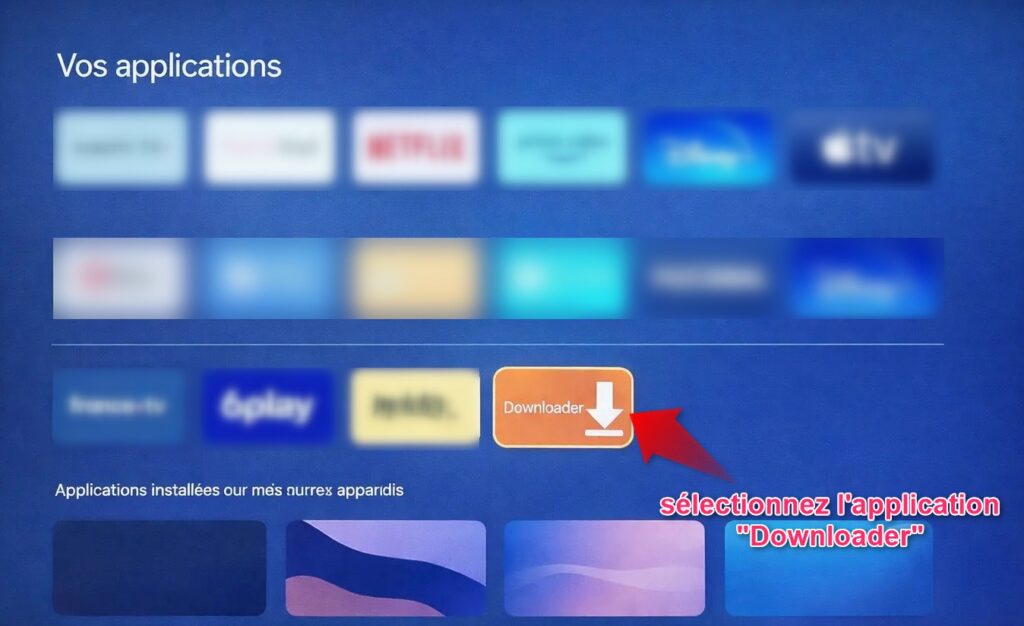 Nous allons utiliser l’application Downloader, qui permet de télécharger et installer facilement des applications sur Android TV.