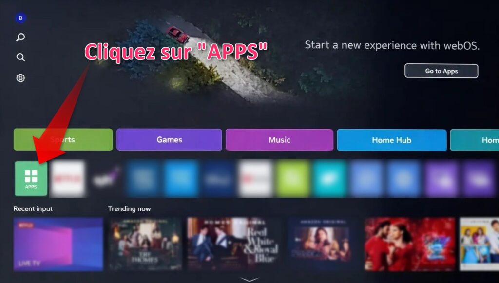 Sur l’écran principal de votre LG Smart TV, recherchez la section Apps dans la barre des applications.