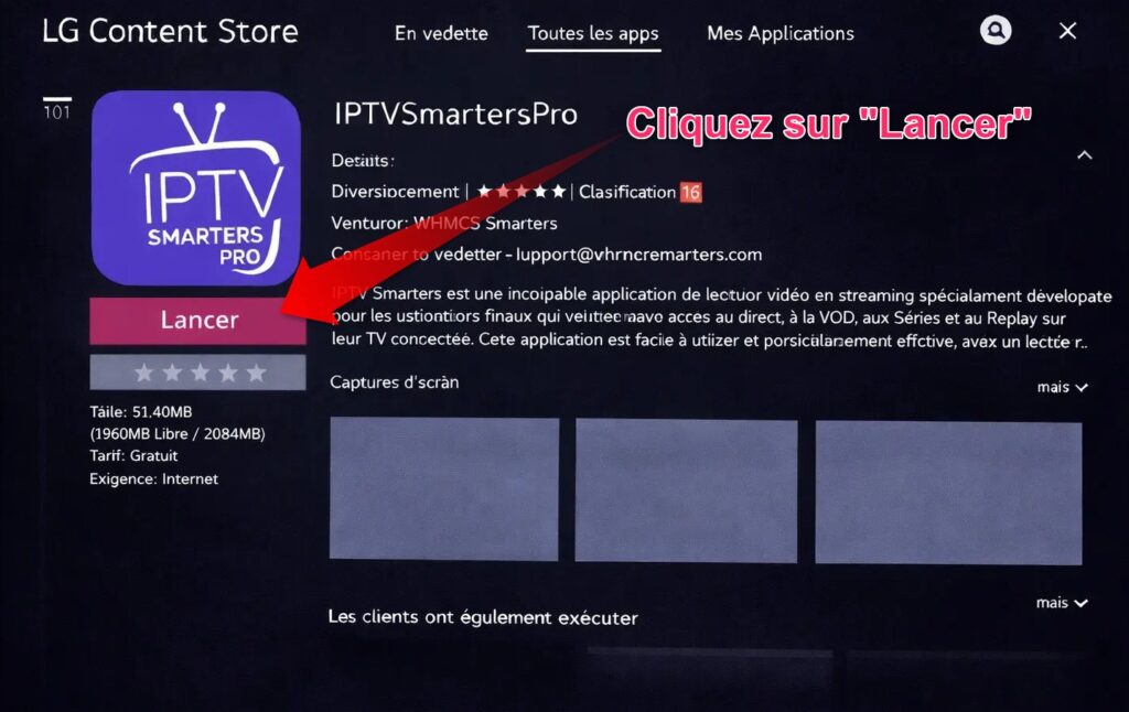 6. Cliquez sur Lancer pour ouvrir l’application IPTV Smarters Pro.
